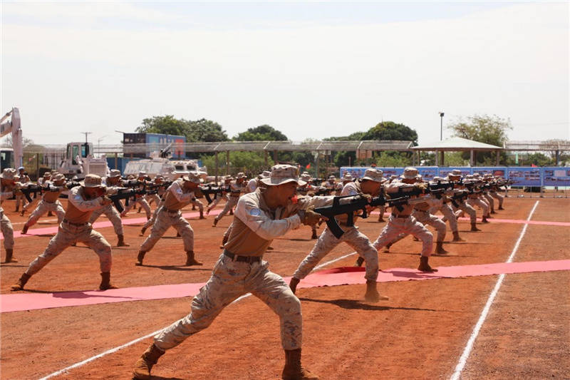 授勋仪式结束后,维和官兵还进行了刺杀操、匕首操、硬气功、格斗术和战术表演等精彩的军事技能演示。充分展现了中国军人的血性胆气,赢得了到场嘉宾的阵阵掌声。
